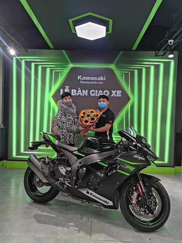 'Hôm nay có một anh khách người Hải Phòng cất công lên tận showroom mình để rước em... ZX10R 2021 về tận nhà anh em ạ. Và đây là chiếc ZX10R 2021 đầu tiên tại khu vực miền Bắc luôn. Đúng là anh em Hải Phòng 15 hoa phượng đỏ mãi đỉnh' - chủ showroom chia sẻ trong đoạn clip.