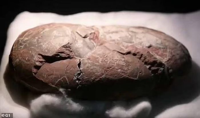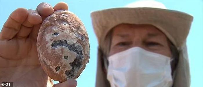 Một trong 5 quả trứng khủng long vừa được tìm thấy ở Brazil.