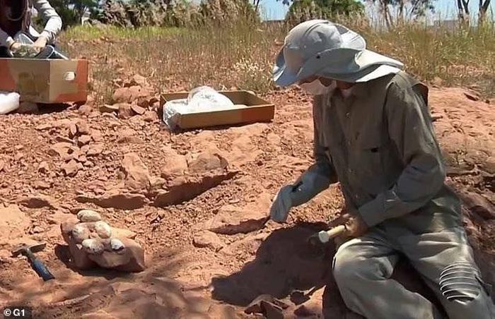 Ổ trứng hóa thạch khủng long được tìm thấy ở Brazil. Ảnh Daily Mail.