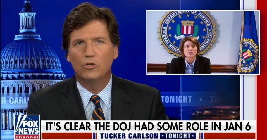 Trong phân đoạn phải xem mới nhất của ḿnh, Carlson nhấn mạnh cuộc trao đổi quan trọng của Thượng nghị sĩ Ted Cruz với Trợ lư điều hành Chi nhánh An ninh Quốc gia FBI Jill Sanborn, khiến bà từ chối trả lời một số câu hỏi đơn giản, dễ hiểu về sự tham gia của Chính phủ vào 1/6.