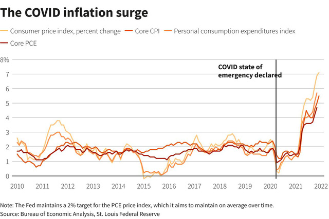 Tỷ lệ lạm phát hiện nay ở Mỹ quá cao so với mục tiêu của Fed là 2%.