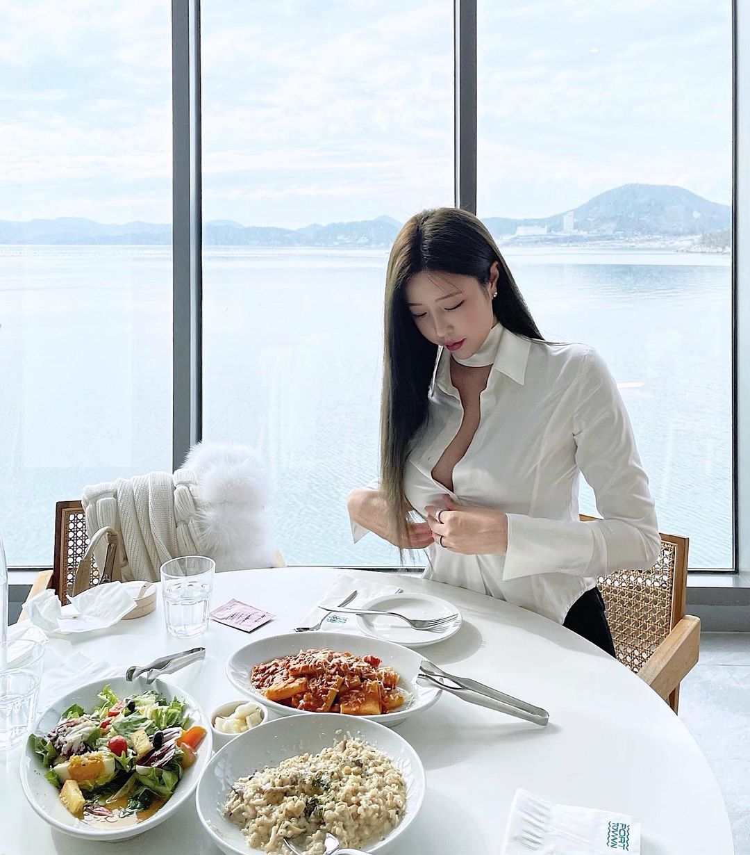 Lựa chọn trang phục tôn dáng của Choi Somi khi đi ăn hàng.