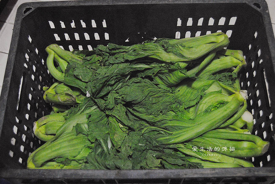 Cải bẹ xanh, nước suối đóng chai.