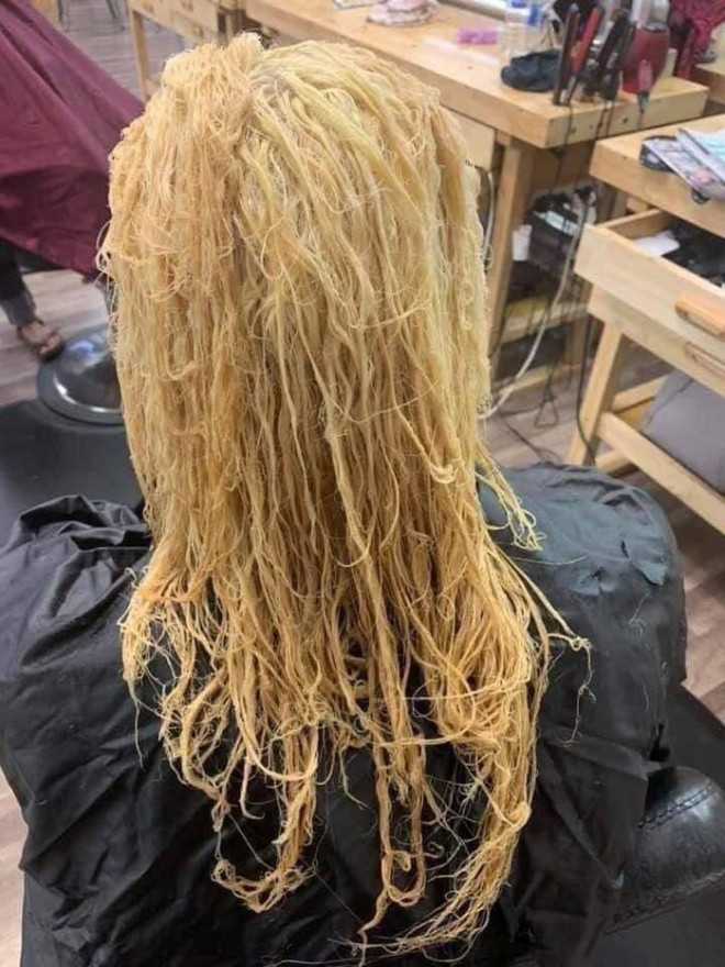 Tuy nhiên, không ít trường hợp đã trở thành nạn nhân của việc tẩy tóc, nhuộm tóc dịp cận Tết. Nhớ lại "ác mộng" mang tên làm tóc đón Tết hai năm trước, V.A.T (26 tuổi, quê Hà Nội) vẫn chưa hết bàng hoàng. T kể, chỉ vì muốn thay đổi phong cách và có một diện mạo thật mới để về quê đón Tết, chiều 25 âm lịch, cô đã quyết định tẩy tóc để nhuộm màu bạch kim đang hot lúc bấy giờ.