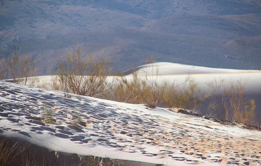 Đây là lần thứ 5 trong 42 năm qua thị trấn này nhìn thấy tuyết rơi trên sa mạc, các lần xuất hiện trước đó vào các năm 1979, 2016, 2018 và 2021.
