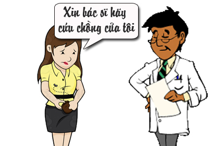 - Thưa bác sĩ, xin ông cứu chồng tôi ngay. Anh ấy bị điếc.