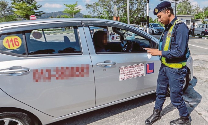 Một nhân viên của JPJ kiểm tra giấy tờ của một học viên ở một trung tâm đào tạo lái xe ở Malaysia. Ảnh: NST