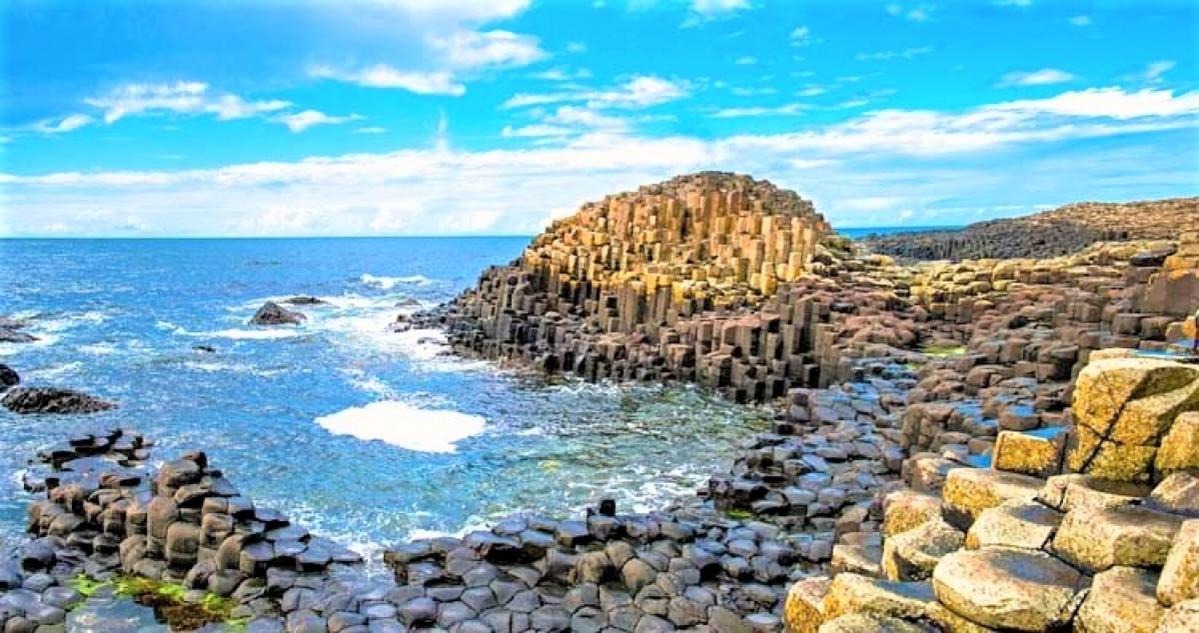 Cột đá, Bắc Ireland: Cột đá là khu vực của khoảng 40.000 cột đá bazan không đều, trông giống như những bậc thang xuống biển, cách Derry 40 km về phía đông bắc trên ŕa Cao nguyên Antrim, giữa Causeway Head và Benbane Head. Các bậc thang được h́nh thành cách đây khoảng 50-60 triệu năm trong Kỷ Paleogen khi dung nham chảy từ từ di chuyển về phía bờ biển, nguội dần và sau đó tiếp xúc với biển. Các lớp bazan đă tạo ra các cột và áp lực giữa các cột dẫn đến các h́nh dạng đa giác này. Các bậc thang cao tới 25 m và có đường kính thay đổi từ 4,5-6 m. Cột đá được công nhận là Di sản Thế giới từ năm 1986.