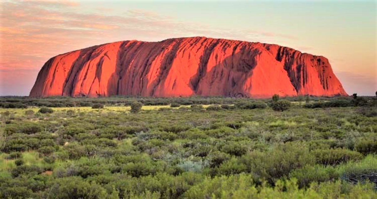 Uluru, Australia: Uluru là một tảng đá sa thạch nguyên khối khổng lồ nằm cách thị trấn Alice Springs (phía nam của Bắc Australia) 334 km. Nó được cấu tạo từ sa thạch arkosic, nằm giữa sa mạc và cao hơn mực nước biển 860m, được nhà thám hiểm Ernest Giles phát hiện lần đầu tiên năm 1872. Một trong nét độc đáo là màu sắc của của tảng đá thay đổi theo vị trí của Mặt Trời. Lúc hoàng hôn nó có màu đỏ cam. Đây là một địa danh nổi tiếng kể từ những năm 1930 và được UNESCO công nhận là Di sản Thế giới vào năm 1987.