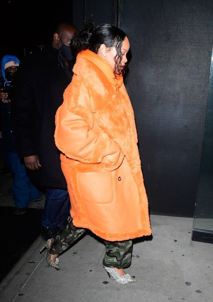 Rihanna đã chọn thiết kế camo của CELINE. "Nữ hoàng phong cách đường phố" đã cho thấy quần túi hộp là sự kết hợp lý tưởng cho những chiếc áo khoác mùa đông hay giày cao gót. Ảnh: Raymond Hall.