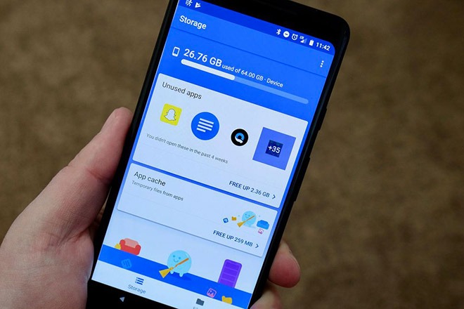 Bước đầu tiên là làm sạch bộ nhớ trong của smartphone bởi điện thoại cũng chạy chậm hơn do đầy bộ nhớ. Đối với điều này, người dùng có thể dựa vào ứng dụng Files của Google để hỗ trợ. Nó giúp người dùng xóa các bức ảnh trùng lặp, các tệp lớn và các tệp phương tiện không cần thiết. Ứng dụng có thể được tải xuống từ Play Store và kích thước cũng khá nhỏ.