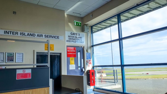 Phòng chờ tại sân bay. Tùy vào điều kiện thời tiết, thời gian sẽ dài hoặc ngắn hơn vài chục giây. Dù đoạn đường bay ngắn hơn cả đường băng của hầu hết sân bay trên thế giới, chuyến bay này vẫn được khai thác vì dân số trên đảo Papa Westray quá ít, dẫn tới việc xây cầu nối hai đảo không mang lại hiệu quả kinh tế.