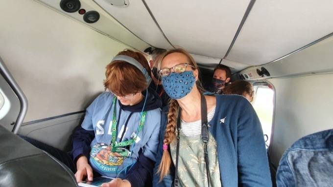 Máy bay được sử dụng là máy bay cánh quạt, thân nhỏ. Sau khi lên máy bay, phi công trực tiếp dặn dò vài điều chú ý an toàn và không có tiếp viên.