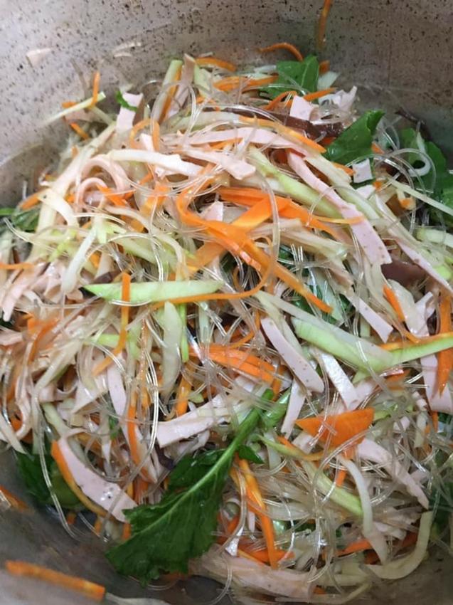 Trộn đều miến, su hào, cà rốt, giò, nấm hương, mộc nhĩ.