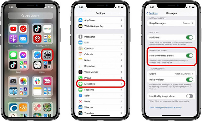 Điều này bắt nguồn từ một tính năng mới được Apple đưa vào iOS mang tên Filter Unknown Senders. Tính năng này cho phép ứng dụng Messages của iPhone tự động ngăn các tin nhắn từ các số không xác định trong danh bạ làm lộn xộn hộp thư đến của mình. Đây là một cách dễ dàng để ngăn chặn tin nhắn rác làm phiền mà không cần phải chặn tin nhắn trên iPhone, vốn phải thực hiện dựa vào từng số liên lạc.
