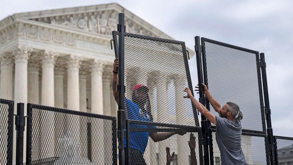 Vào thứ Tư, nhà chức trách tăng thêm chiều cao hàng rào 8 foot vốn được dựng lên bên ngoài Tối cao Pháp viện vào tuần trước, tương tự như hàng rào chung quanh Điện Capitol sau vụ bạo động Điện Capitol ngày 6 tháng 1 năm 2021, trước diễn biến sẽ có một cuộc biểu tình quy mô lớn sẽ diễn ra vào thứ Bảy.