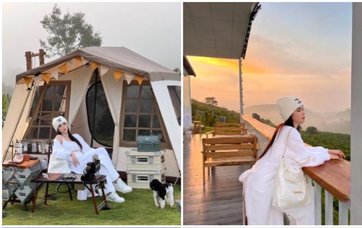 Cô cho biết: "Đón bình minh tại khu đất mới thân yêu của mình. Xuất sắc 10/10 luôn. Không biết cả nhà chấm bao nhiêu điểm".