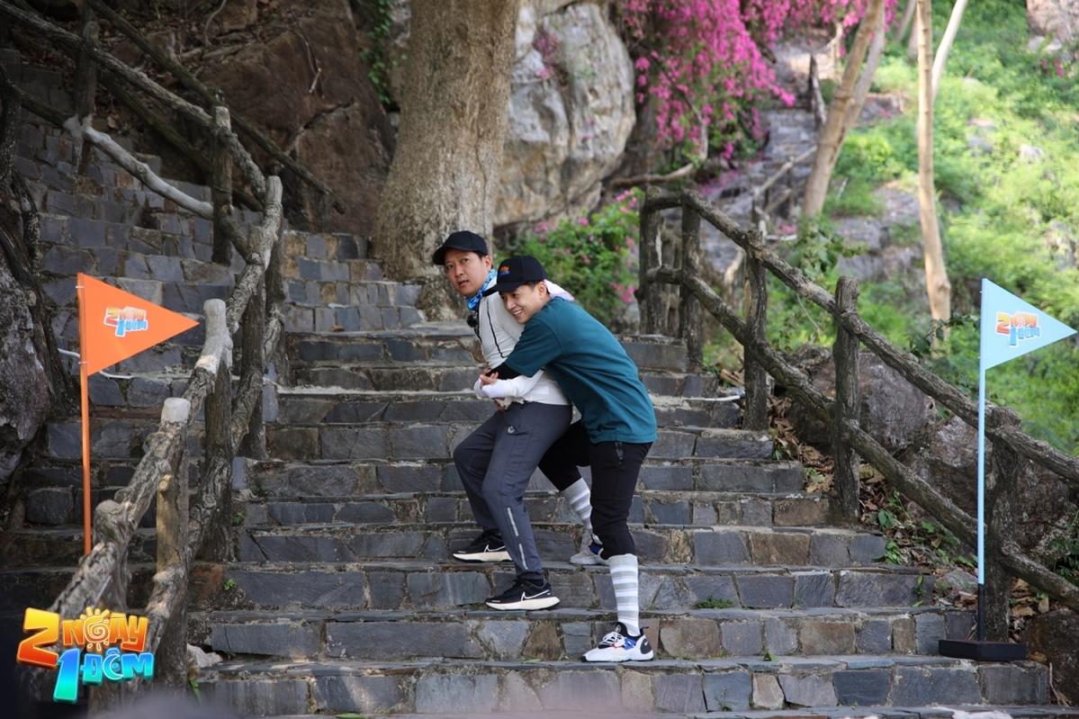 Với đặc điểm ‘tuổi cao sức yếu’ nhất trong dàn anh em, Trường Giang toát mồ hôi hột với thử thách leo núi. Tuy vậy là một người anh cả - tấm gương cho 5 cậu em, Trường Giang không dám than thở nhiều.
