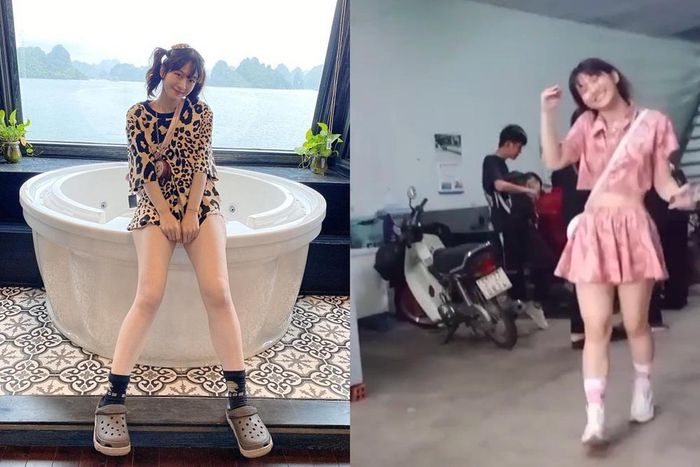 Có thể thấy so với ảnh sống ảo, Lê Bống ngoài đời không quá cao. Đôi chân cô nàng cũng gặp nhược điểm là kém thon gọn, không giống như clip TikTok.