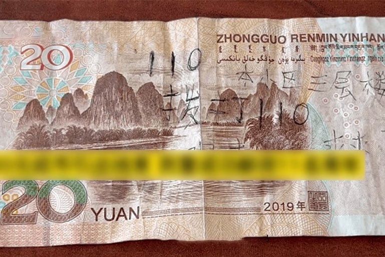 Theo Baotou News, nội dung dòng chữ viết trên tờ tiền là việc 11 người đã bị bắt nhốt ở tầng 3 của một tòa nhà ở thành phố Bao Đầu. Họ bị bắt cóc và bị ép làm việc cho tổ chức hoạt động theo mô hình kim tự tháp. Trong quá trình làm việc, những người này bị nhóm tội phạm có trang bị vũ khí canh gác.