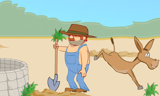 Một ngày kia, con lừa của bác nông dân sảy chân ngã xuống cái giếng bỏ hoang. Con vật kêu lên thảm thiết nhiều giờ liền trong lúc người chủ của nó nghĩ xem nên làm gì để cứu con lừa lên… Cuối cùng, ông quyết định rằng, vì con lừa cũng già rồi và cái giếng thì đằng nào cũng phải lấp, nên sẽ có cách để không phải bận tâm đến con lừa nữa.