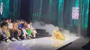 Old  Arrow HH Thùy Tiên ngã trên sàn catwalk