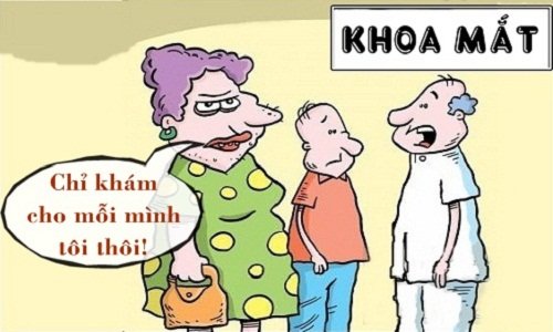 - Chào hai bà cháu, chẳng hay bà đến đây đo mắt cho cháu hai là khám mắt cho cả hai người luôn ạ?