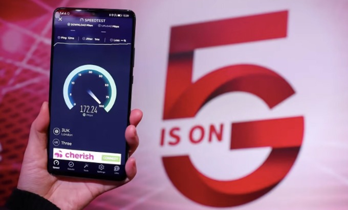 Tốc độ mạng 5G của Huawei được đo tại London năm 2020. Ảnh: Xinhua