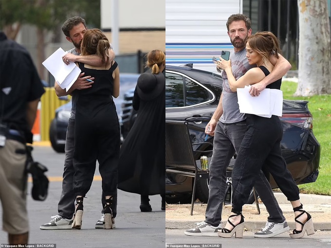 Ngày 21/6, cánh săn ảnh bắt gặp Jennifer Lopez tới thăm bạn trai Ben Affleck tại trường quay bộ phim mới nhất của anh. Nữ ca sĩ kiêm diễn viên 52 tuổi và bạn trai 49 tuổi ôm hôn thắm thiết trong thời gian nghỉ trưa trên trường quay.