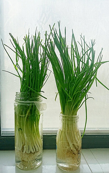 Nếu hành lá có rễ, tiếp tục phát triển khi mua về, có thể trồng thủy sinh.