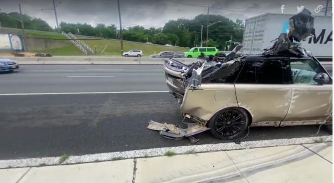 Chiếc Range Rover mới tinh đã bị phá hủy sau khi rơi từ phía sau xe tải chuyên chở khi đang chạy trên một cao tốc ở bang New Jersey, theo Daily Voice. Hơn thế, mẫu xe sang Anh rơi trúng một chiếc Honda Accord màu đen và theo một nhân chứng, ít nhất một người bị thương.