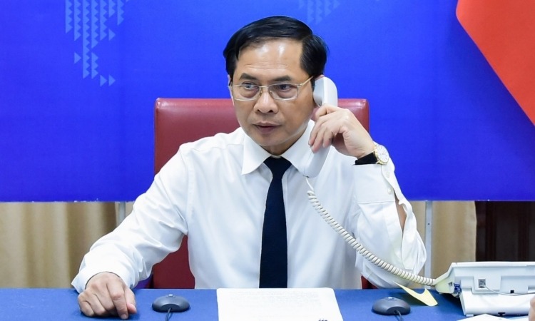 Bộ trưởng Ngoại giao Bùi Thanh Sơn điện đàm với Phó Thủ tướng, Bộ trưởng Ngoại giao và Kiều dân Jordan Ayman Al-Safadi hôm 29/6. Ảnh: BNG.