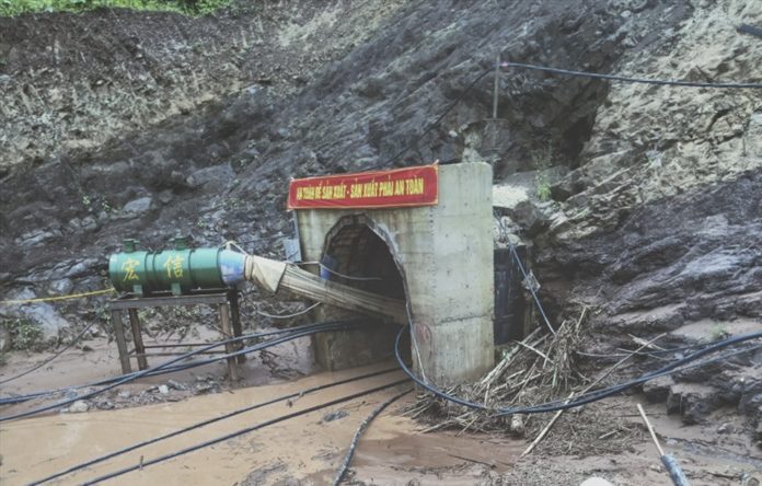 4 công nhân tại Điện Biên đang thi công hầm thủy điện thì bất ngờ bị lũ cuốn vào hầm. Ảnh: CTV