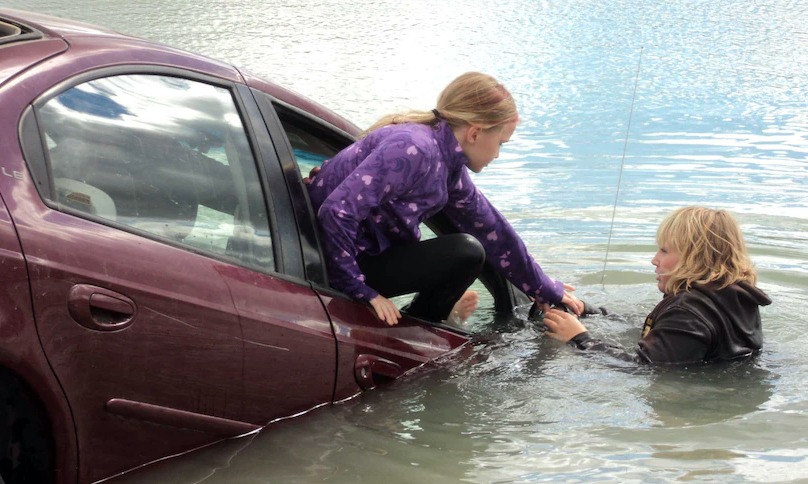 Một thực nghiệm cứu hộ trong nghiên cứu về việc thoát hiểm khỏi ôtô ngập nước ở Australia. Ảnh: Dr Gordon Giesbrecht