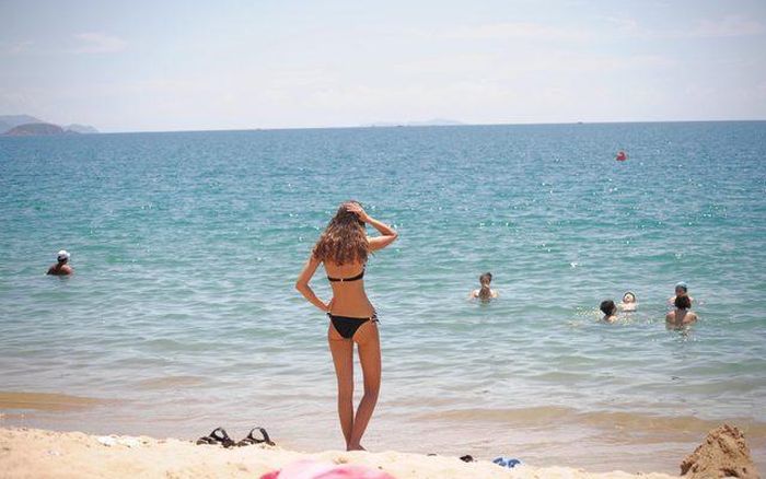 Sau khi tắm biển, chồng đã vô cùng ngạc nhiên trước nhan sắc thật của vợ với gương mặt mộc, không chút phấn son trang điểm.
