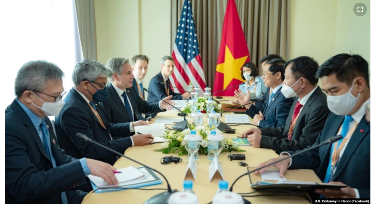 Ông Antony Blinken, ngoại trưởng Hoa Kỳ, vào hôm thứ Sáu, 5 tháng 8 vừa có cuộc hội đàm với người đồng cấp cộng sản Việt Nam Bùi Thanh Sơn, bên lề Hội nghị Bộ trưởng Ngoại giao ASEAN lần thứ 55 (AMM-55) và các Hội nghị Bộ trưởng Ngoại giao giữa ASEAN với Đối tác từ ngày 2 đến ngày 6 tháng 8 tại Phnom Penh, Cambodia.