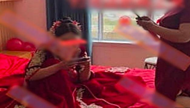 Trong hình ảnh được chia sẻ lên mạng xã hội, cô dâu diện bộ váy cưới đỏ rực, khoanh chân ngồi trên giường chơi game. Trong lúc đó, tất cả mọi người đều đứng nhìn và chờ đợi, chú rể cũng hết cách. Dù rất tức giận nhưng nghĩ tới mặt mũi hai bên gia đình, nghĩ đến chuyện chung thân đại sự và số tiền sính lễ đã bỏ ra, anh kiên nhẫn đợi cô chơi hết ván game rồi hoàn tất thủ tục cưới.