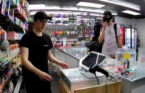 Trước đó, cửa hàng của Nguyen bị hai đối tượng bịt mặt xông vào định cướp tiền, theo video ghi lại vụ việc.