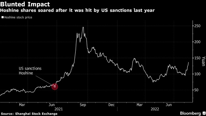 Năm ngoái, vốn hóa Hoshine tăng từ dưới 9 tỷ USD đầu tháng 6 lên 41 tỷ USD chỉ trong 3 tháng. Giá silicon có giảm sau đó, nhưng cổ phiếu hãng này trên sàn Thượng Hải vẫn tăng 111% kể từ khi lệnh trừng phạt được công bố.