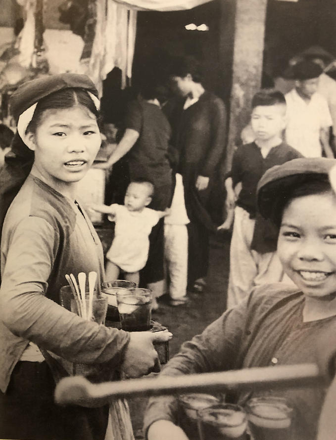 Các cô bán siro lựu ở gần chợ Đồng Xuân, Hà Nội năm 1951.