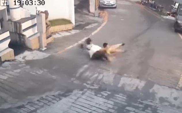 Cụ thể, sự việc được CCTV ghi lại tại thành phố Bách Sắc thuộc khu tự trị dân tộc Choang, tỉnh Quảng Tây, Trung Quốc vào ngày 16/9. Thời điểm đó, một bé trai 5 tuổi ngồi trên chiếc ván trượt và vô tình bị trôi trượt xuống con dốc dài cao khoảng 80m với tốc độ cao.
