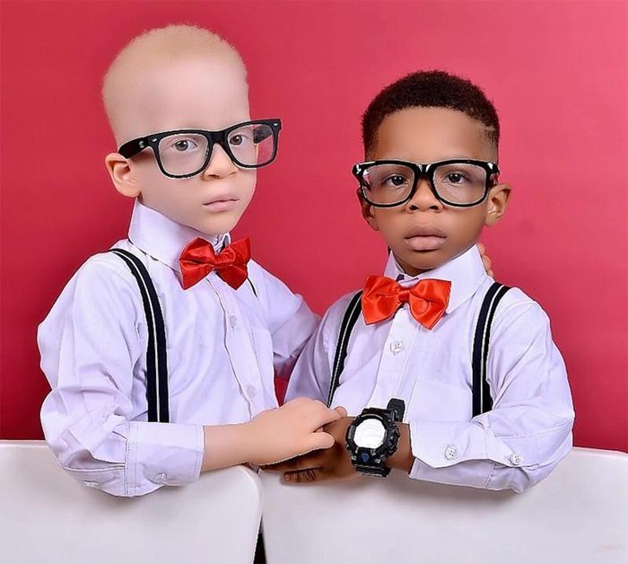 Cùng cha mẹ nhưng một cậu bé có làn da nâu, tóc nâu trong khi bé còn lại có da trắng, tóc vàng.