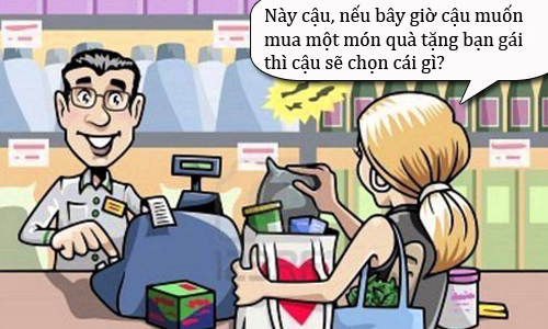 Sắp đến ngày mùng 8 tháng 3, một chàng trai đến trung tâm thương mại mua quà tặng bạn gái. Anh ta đứng một hồi lâu mà chẳng biết nên mua gì liền hỏi nhân viên bán hàng: