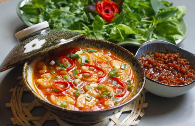 Món này ăn nóng kèm với các loại rau sống tùy sở thích.
