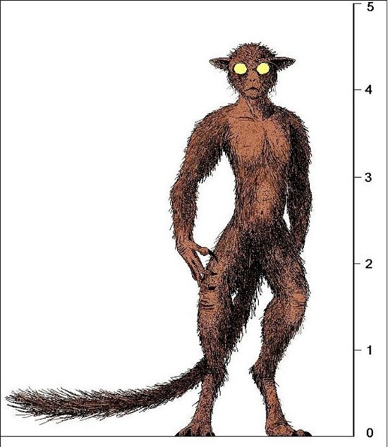 Trong năm 1973, nhà tự nhiên học Loren Coleman đã công bố bản điều tra Rất nhiều người nông dân ở Albany, Kentucky đã bị mất gia súc, ruộng vườn bị phá nát bởi một con vật giống khỉ đầu chó. Coleman sau đó hợp tác với Animal Planet để làm một phóng sự về sinh vật bí ẩn trên.