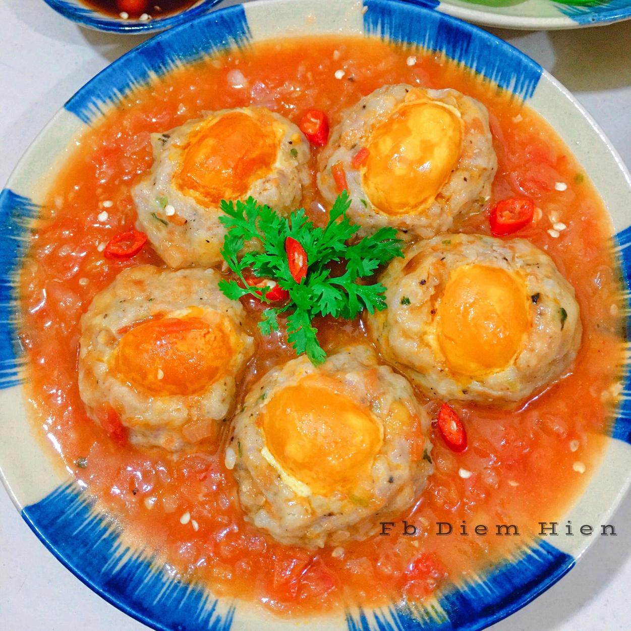 Cách làm xíu mại trứng muối: Cho xíu mại vào sốt cà chua đun tầm 5 phút là được