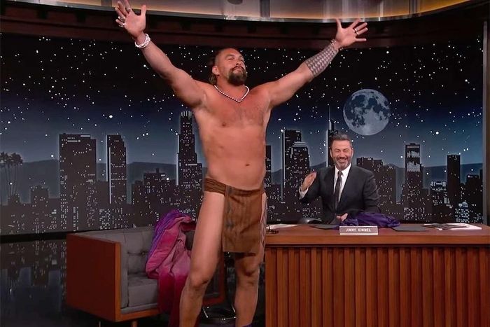 Tham gia chương trình Jimmy Kimmel Live ngày 10/11, tài tử Hollywood cũng xuất hiện với hình ảnh gợi cảm, phô diễn hình thể cơ bắp, không ngại khoe mông trước nhiều khán giả. Momoa phát biểu: "Ôi Chúa ơi, tôi thực sự không thích mặc quần áo nữa".