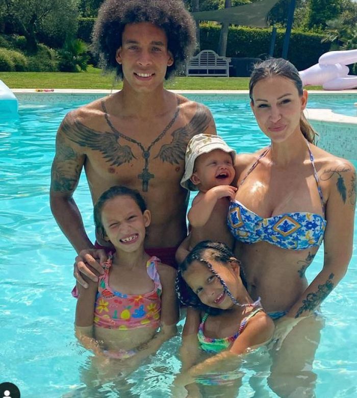 Cầu thủ Axel Witsel và vợ Rafaella cùng các con của mình. Ảnh :Sudinfo