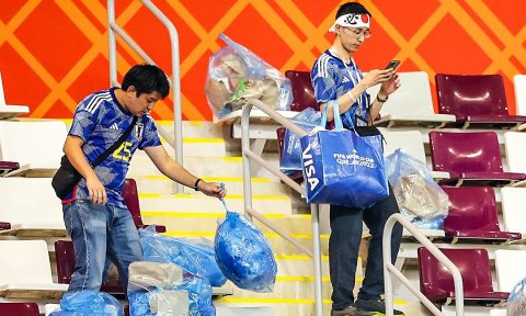Theo Daily Mail, các cổ động viên Nhật Bản được nhìn thấy nhặt rác, đem chai lọ bỏ vào những chiếc túi màu xanh ở sân vận động quốc gia Qatar.