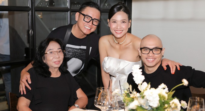 Dương Mỹ Linh và chồng sắp cưới - doanh nhân Bảo Anh (đứng bên trái) trong tiệc sinh nhật cô hồi tháng 7 tại TP HCM. Ảnh: Nhân vật cung cấp